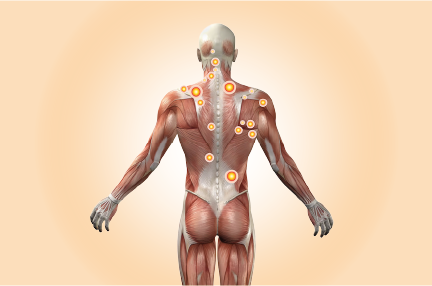 当院では、筋肉の深部に生じた痛みの引き金点「トリガーポイント」を緩め、骨格や内臓、神経のつながりを整え、神経の伝達をスムーズにすることで、身体本来の機能とバランスの回復を目指します。